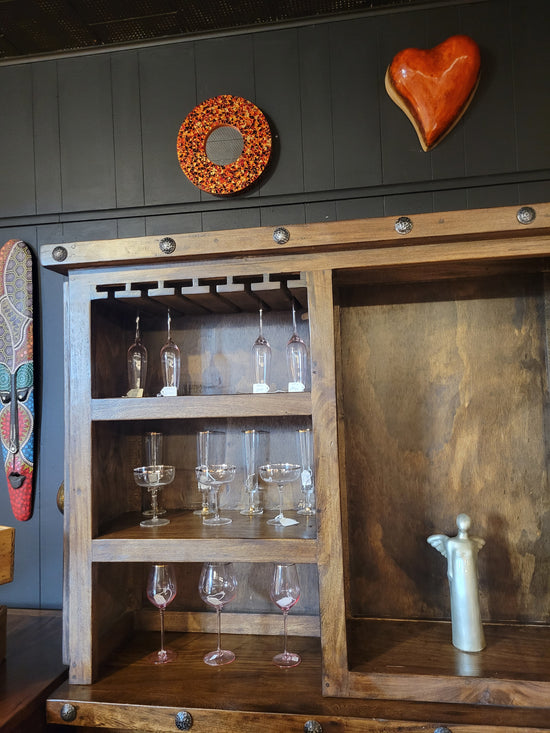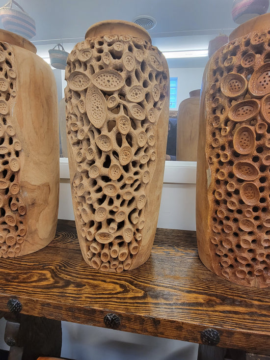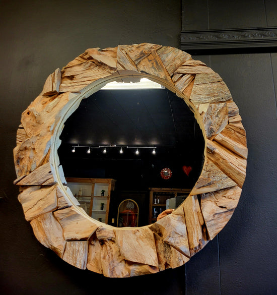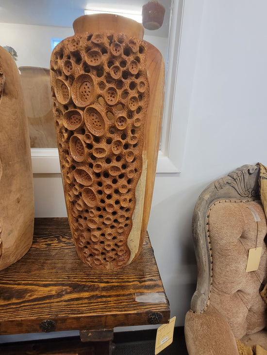TEAK ROUND TABLE WITH CIRCLE STUMPS -SK (SKU 1067)