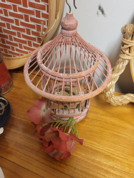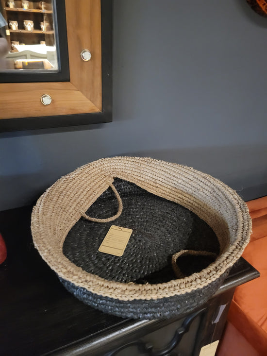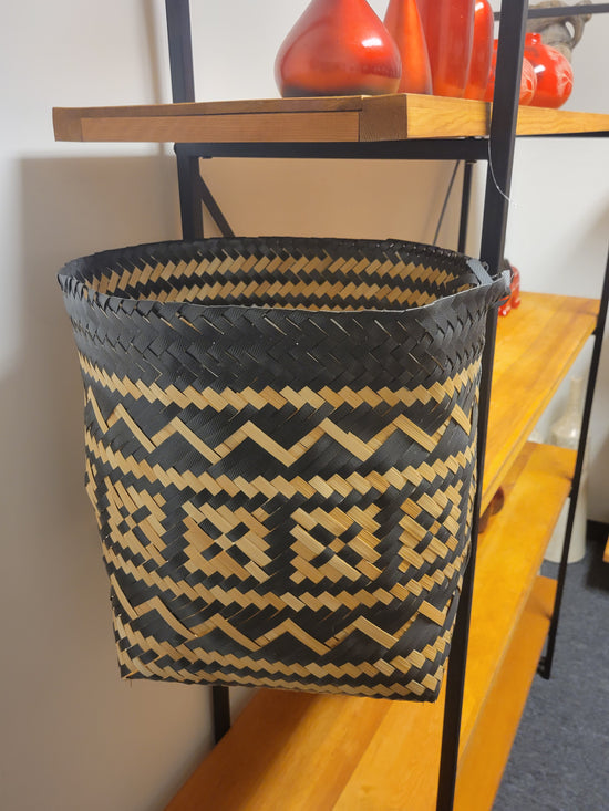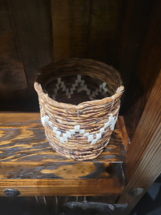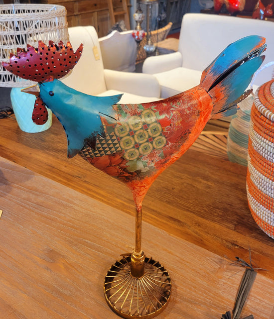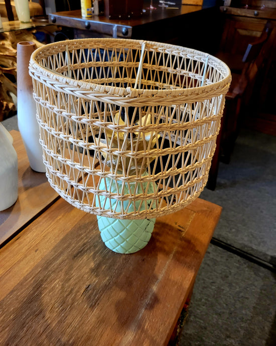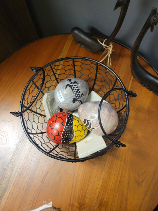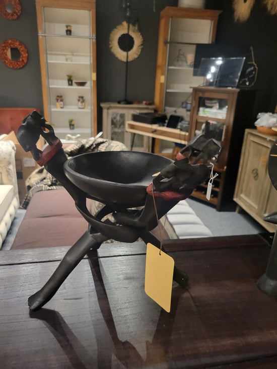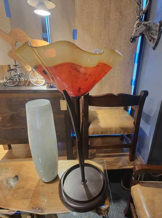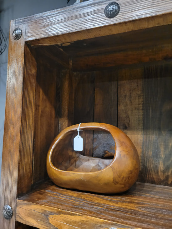 Teak [BASKET SHAPE] SIDE TABLE WITH METAL BASE AND LEG- SK (SKU 1079)