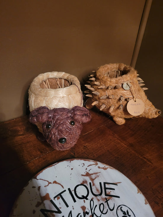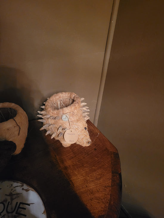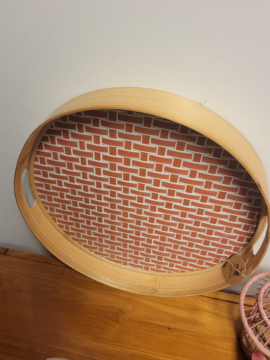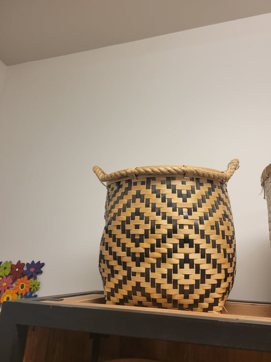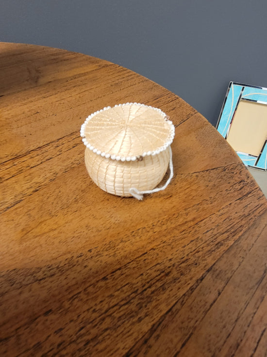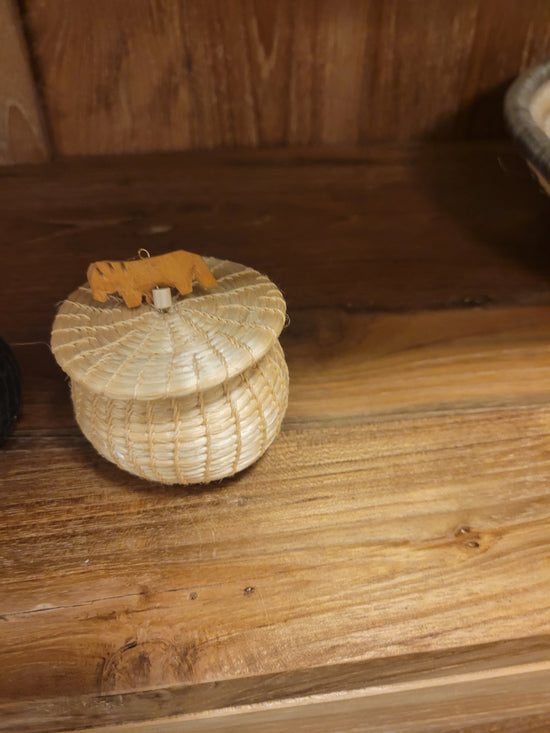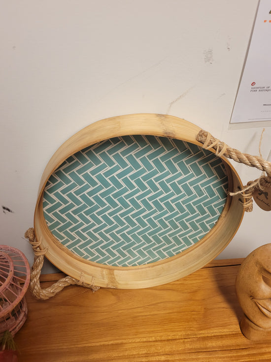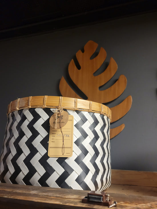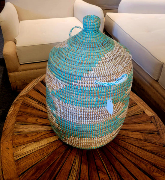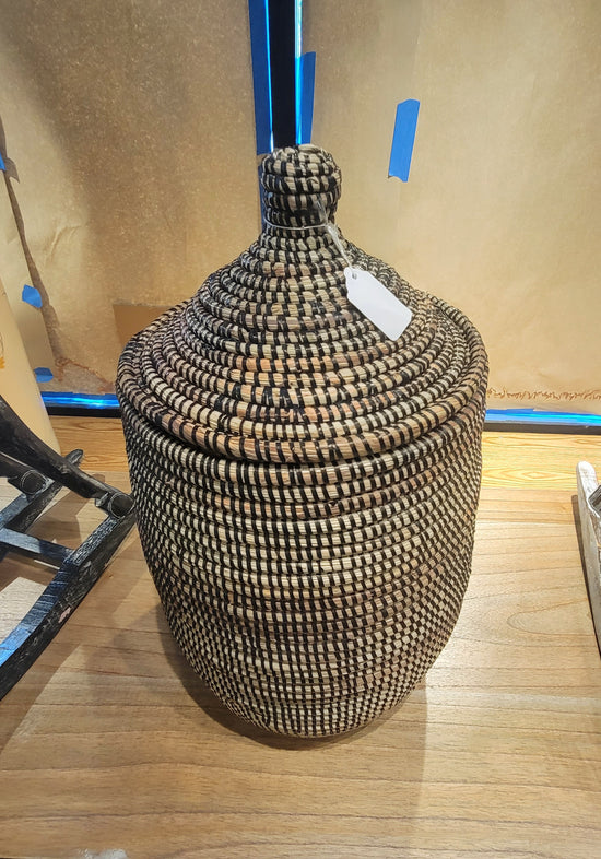 Teak [BASKET SHAPE] SIDE TABLE WITH METAL BASE AND LEG- SK (SKU 1079)