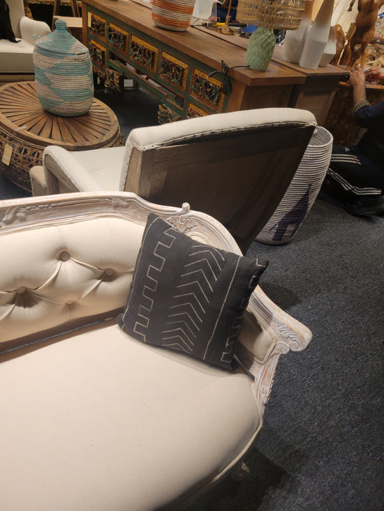 Teal Tufted Organic Canvas Fabric Sofa Chairs With Cedar Wood Trim -SK- SKU 1097