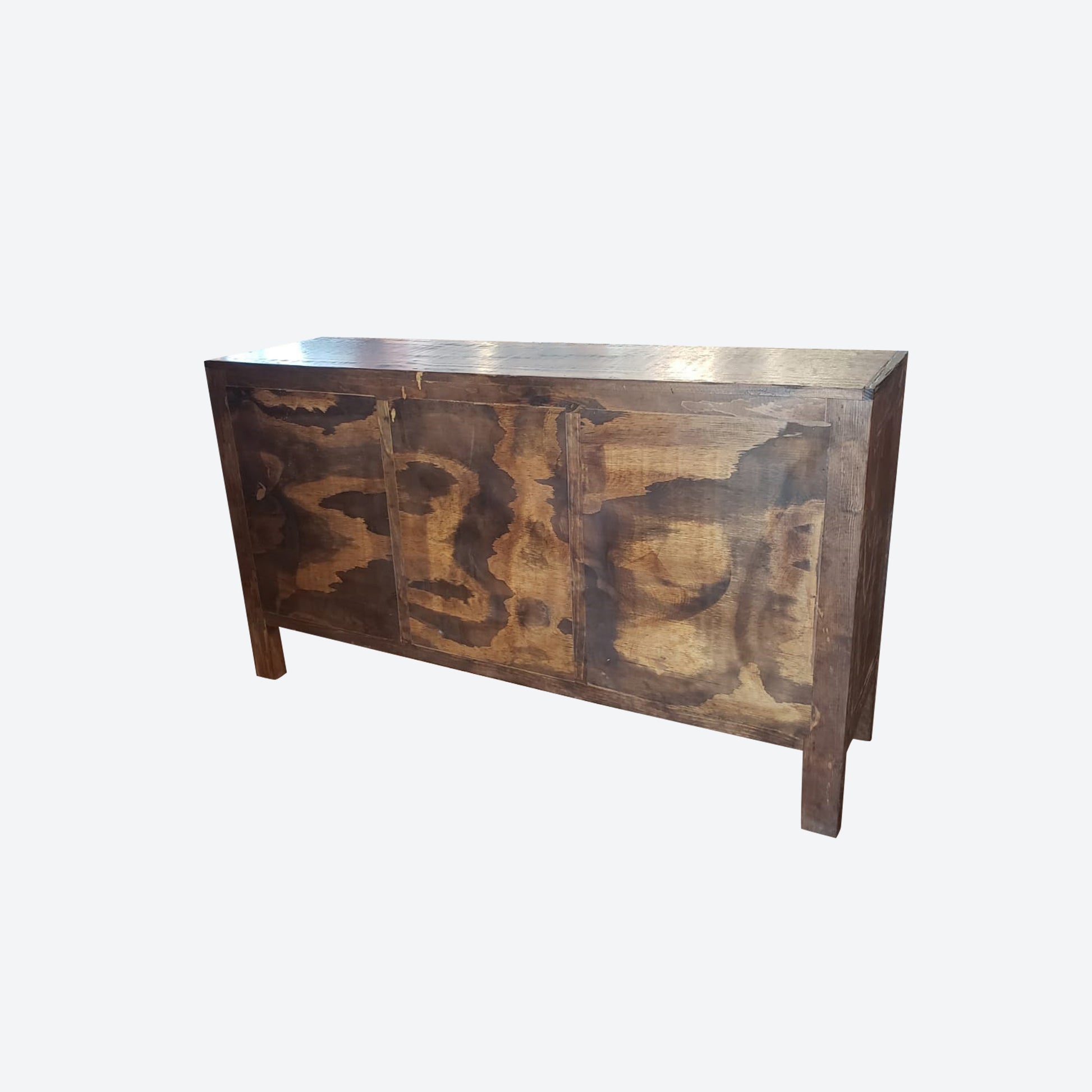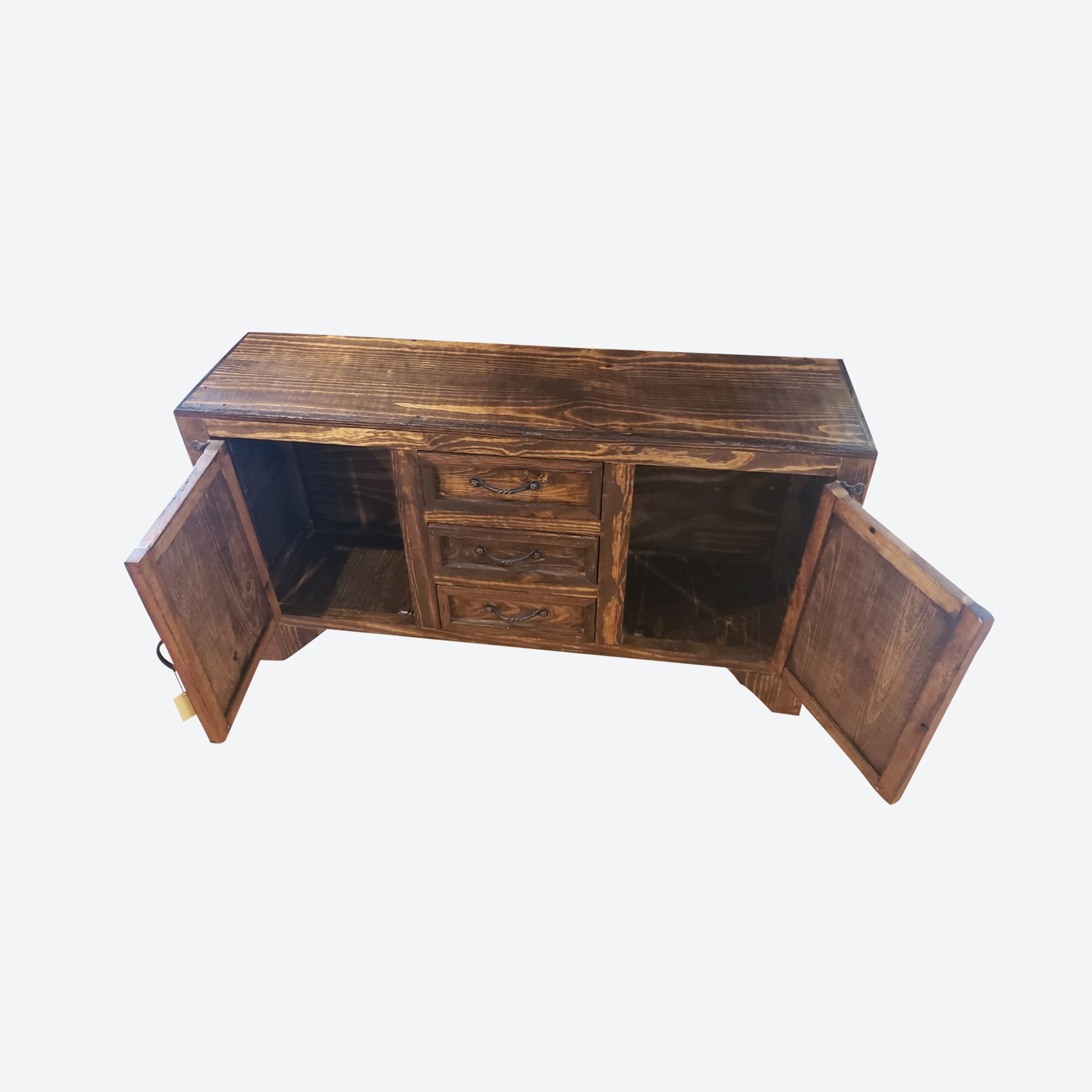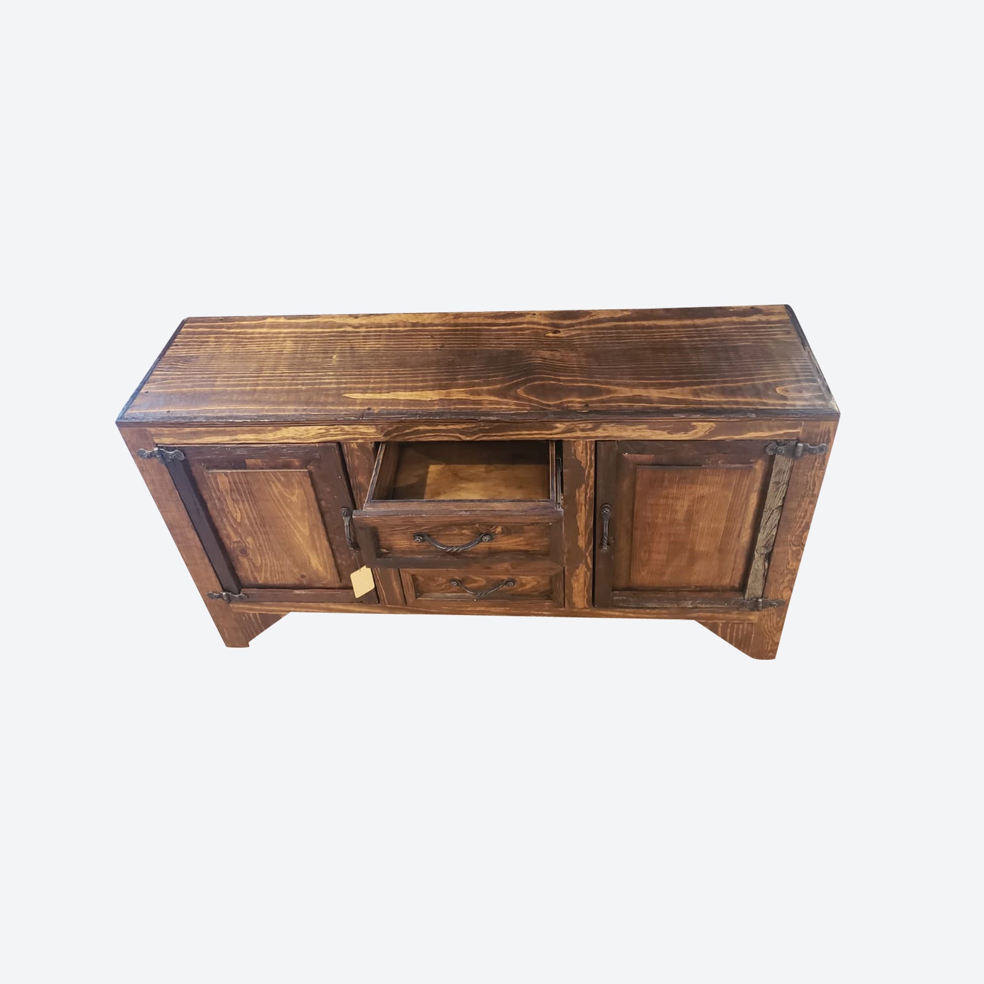 Mesquite WOOD CENTER CONSOLE TABLE WITH HAMMERED ACCENTS AND CABINETS -SK- SKU 1085